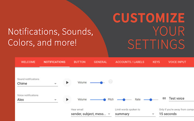 Từ bây giờ trở về sau , mỗi khi có email tới nó sẽ hiện thông báo ở trên thanh tiện ích của Chrome và bạn chỉ cần Click để đọc mà không sợ bỏ lỡ một email nào cả. Ngoài ra, tiện ích này còn cho phép bạn thoải mái thay đổi màu sắc, button, âm thanh thông báo, theme...trong các tùy chọn của nó.