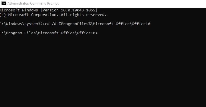 cd /d %ProgramFiles%\Microsoft Office\Office16